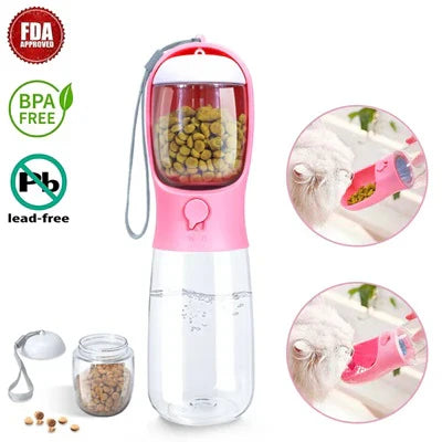 Notre bouteille d'eau pour garder votre animal hydraté et nourri lors de vos déplacements !